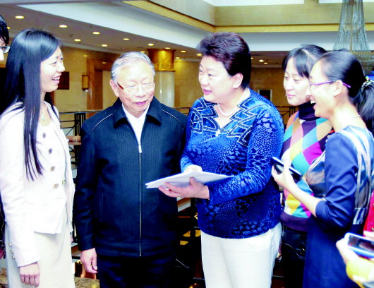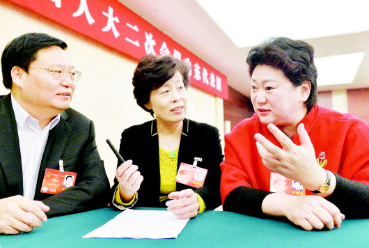 刘晓静代表与张桂玉(左)、邵峰晶(中)代表畅谈“中国梦”