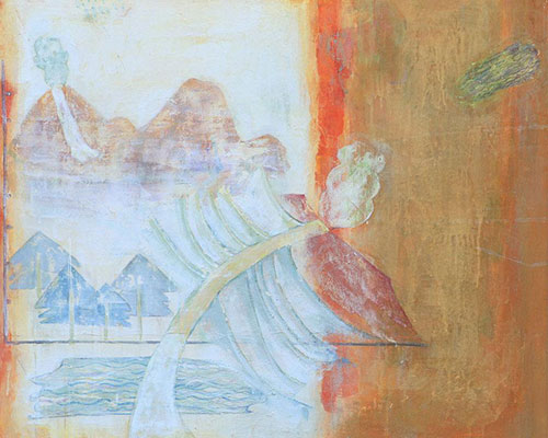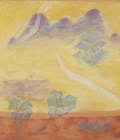 树、石、山、水泊、云烟、楼塔,尤其具有某种标志性意义的闲亭,构成了孙磊山水画基本的语言形式,相对于当代水墨的城市、怪异等题材而言,好象过于拘泥了些,但这并不防碍作为一个天资聪慧的画家在技术和精神上的更新与创造。无疑,孙磊就是这样一个画家,不断深入地提炼意象,不断悉心地强化客体,渐渐赋予它们越来越强大的隐喻的力量,使绘画语言成为一种可行的发光的自在体,语言本身的意义一下子扩延开来,能让读者反复咀嚼其深意而不怠钝。正如孙磊自己谈到绘画语言时所说的那样:“只有把要画的每一个物象,甚至每一处笔墨,都看成是有灵魂的事物,才能更好、更深入地理解绘画,从而才能更自然的创作。”