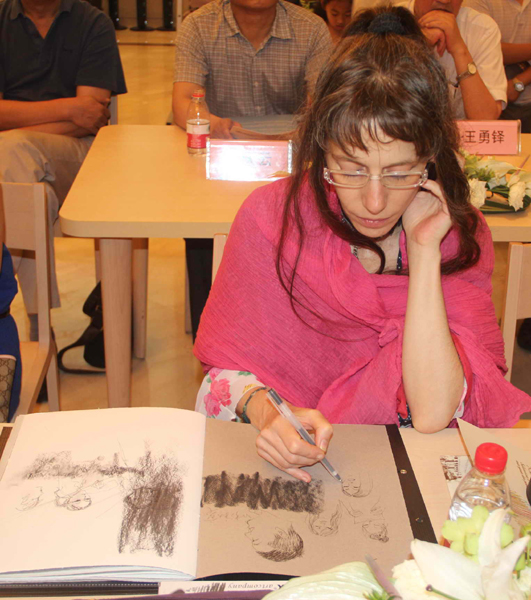 法国画家在“齐鲁巡礼-西方画家眼中的山东”活动启动仪式上作画