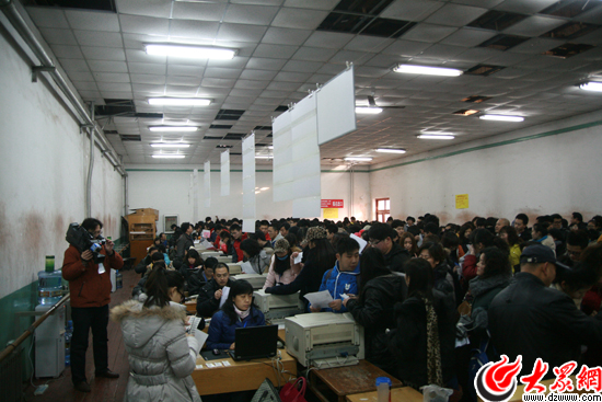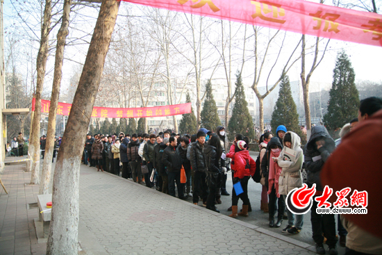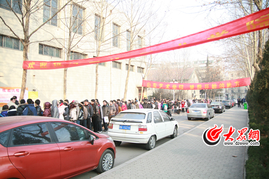 2月1日上午,山东艺术学院2012年招生考试报名工作在该校文东校区正式开始,首日报名异常火爆,整个体育场上也排起了报名的“环形长队”。