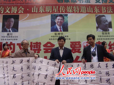 著名书法家张仲亭先生携带小楷力作《论语》来到文博会,作品清雅高趣,神情怡逸;精湛绚丽,雄浑神纯,观众好评如潮。有诗为证:仲亭小楷《论语》成,五月励精为实功。一朝通报齐鲁笑,传世奇宝换新容。现场观者,惊叹其妙、绝!展开后的楷书《论语》长达60余米,成为此次文博会上的一大亮点。