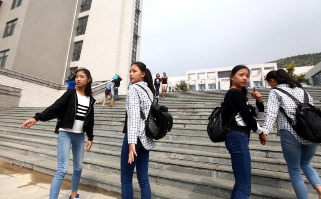 2014年09月12日,山东省济南市,山东艺术学院大一新生报到.2014年艺考中备受关注的菏泽四胞胎“冰清玉洁”同时考入了山艺舞蹈学院。学校为方便四胞胎报到和生活起居,安排专人负责搬运四胞胎的行李,并安排四人同住一间宿舍。