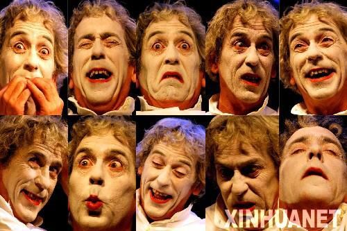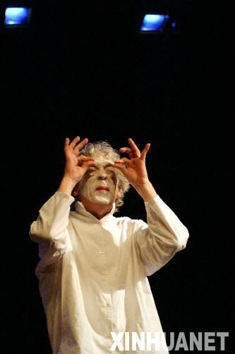 当晚,法国默剧大师菲利普·比佐在山东艺术学院大剧场表演其代表作、2007年智利国际默剧节获奖作品《三十年之静》。新华社发(陈长礼摄)
