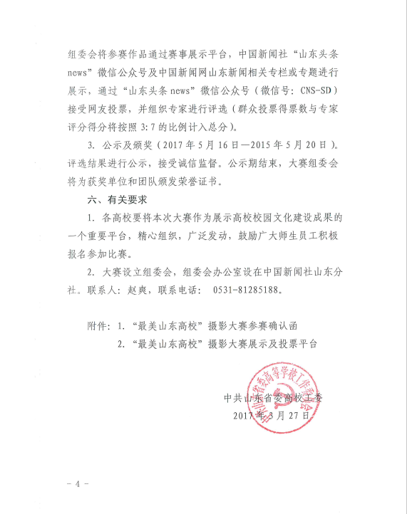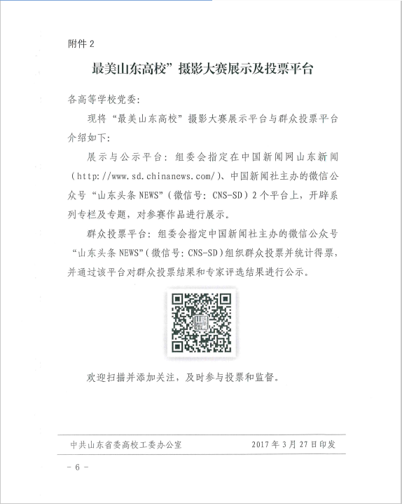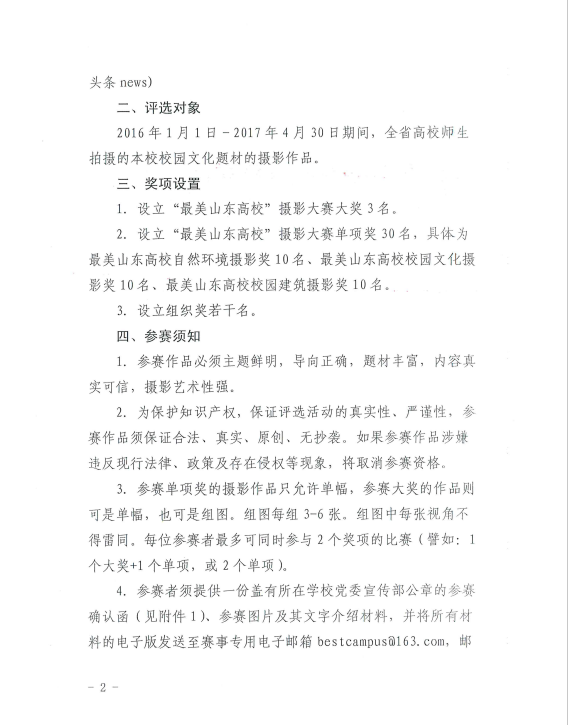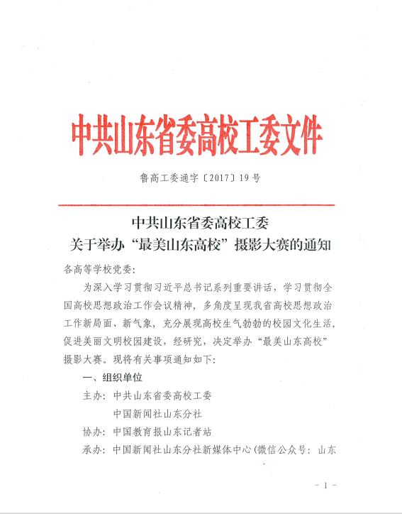 中共山东省委高校工委关于举办“最美山东高校”摄影大赛的通知