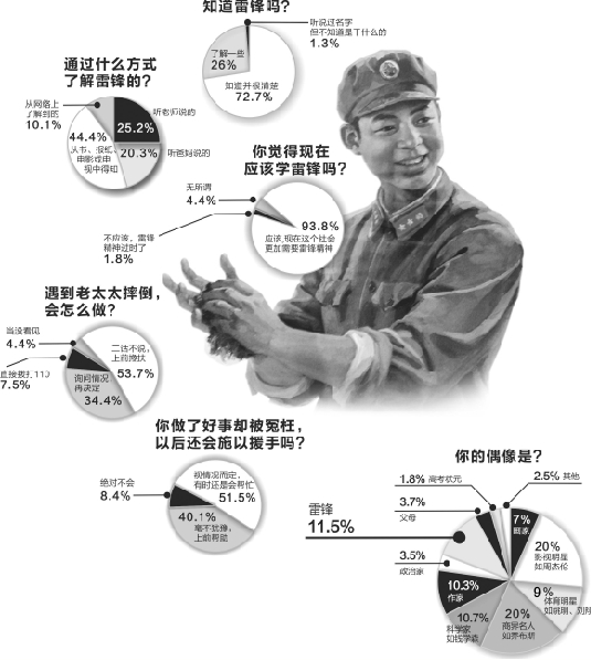 那么,对于现在的“90后”、“00后”来说,有多少人知道雷锋的故事?他们是如何获知雷锋的?他们是怎么看待雷锋的?雷锋精神在当下应该如何得到更好的传承和发扬?这些孩子心目中的偶像又是谁……