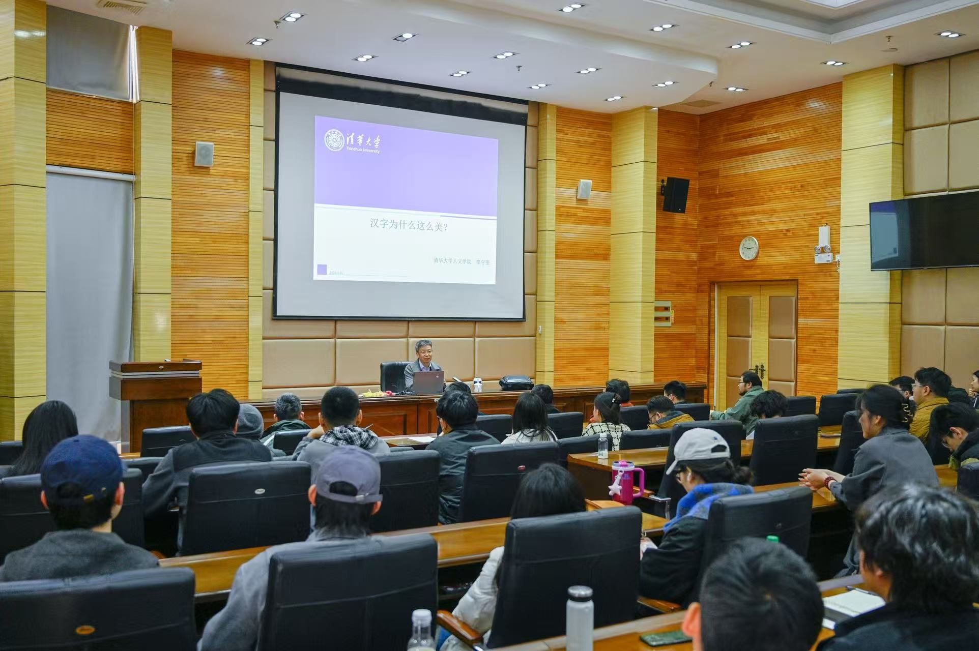 会见后,李守奎作了《汉字为什么这么美》专题讲座。他将古文字专业知识与艺术审美相结合,从“独存至今的古典表意字”“汉字的独特性”“汉字之美”等方面深入浅出地阐释了汉字的形体、文化与功能之美,同时阐明了古文字研究在当代书法篆刻创作中的应用路径。