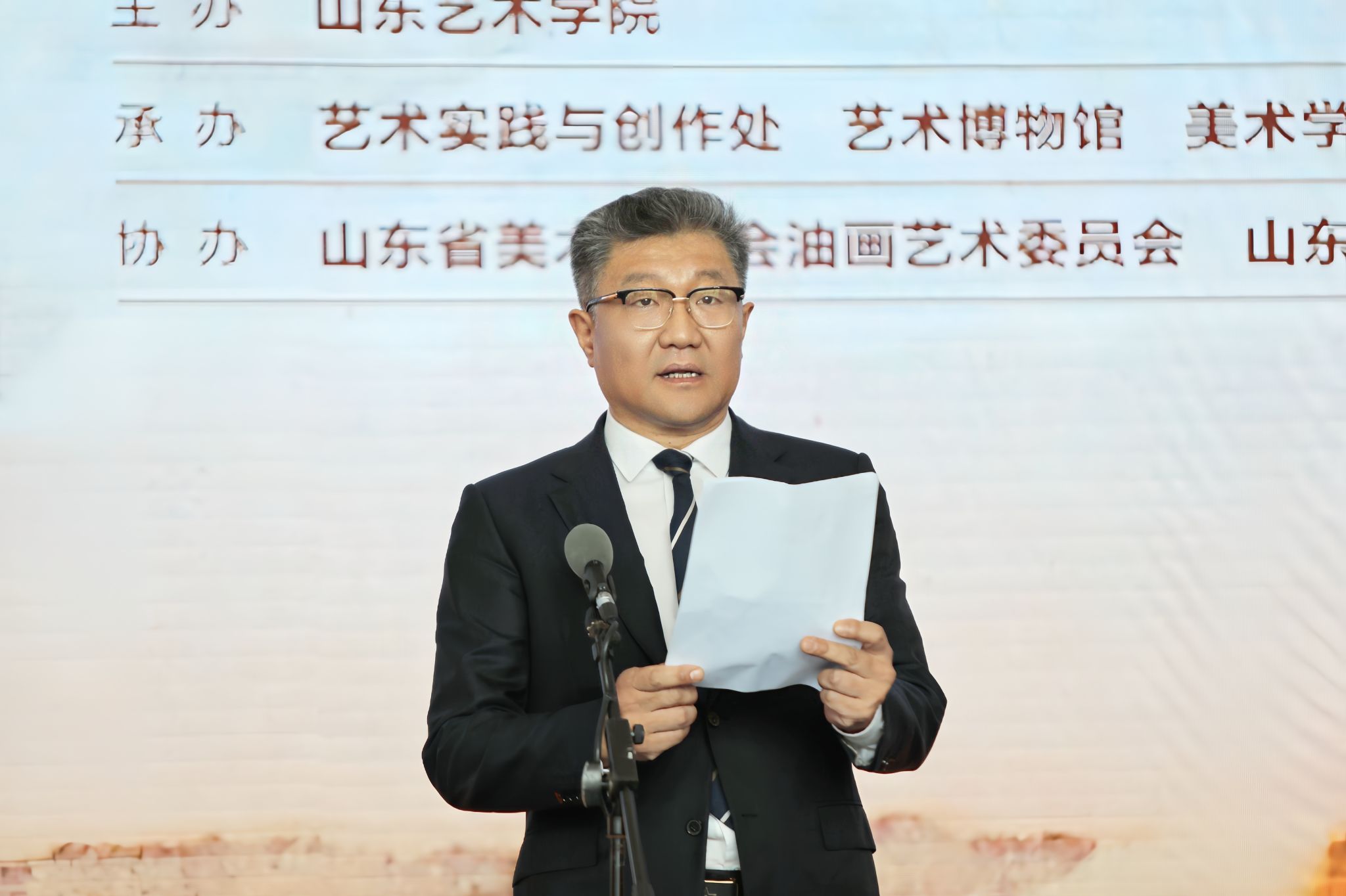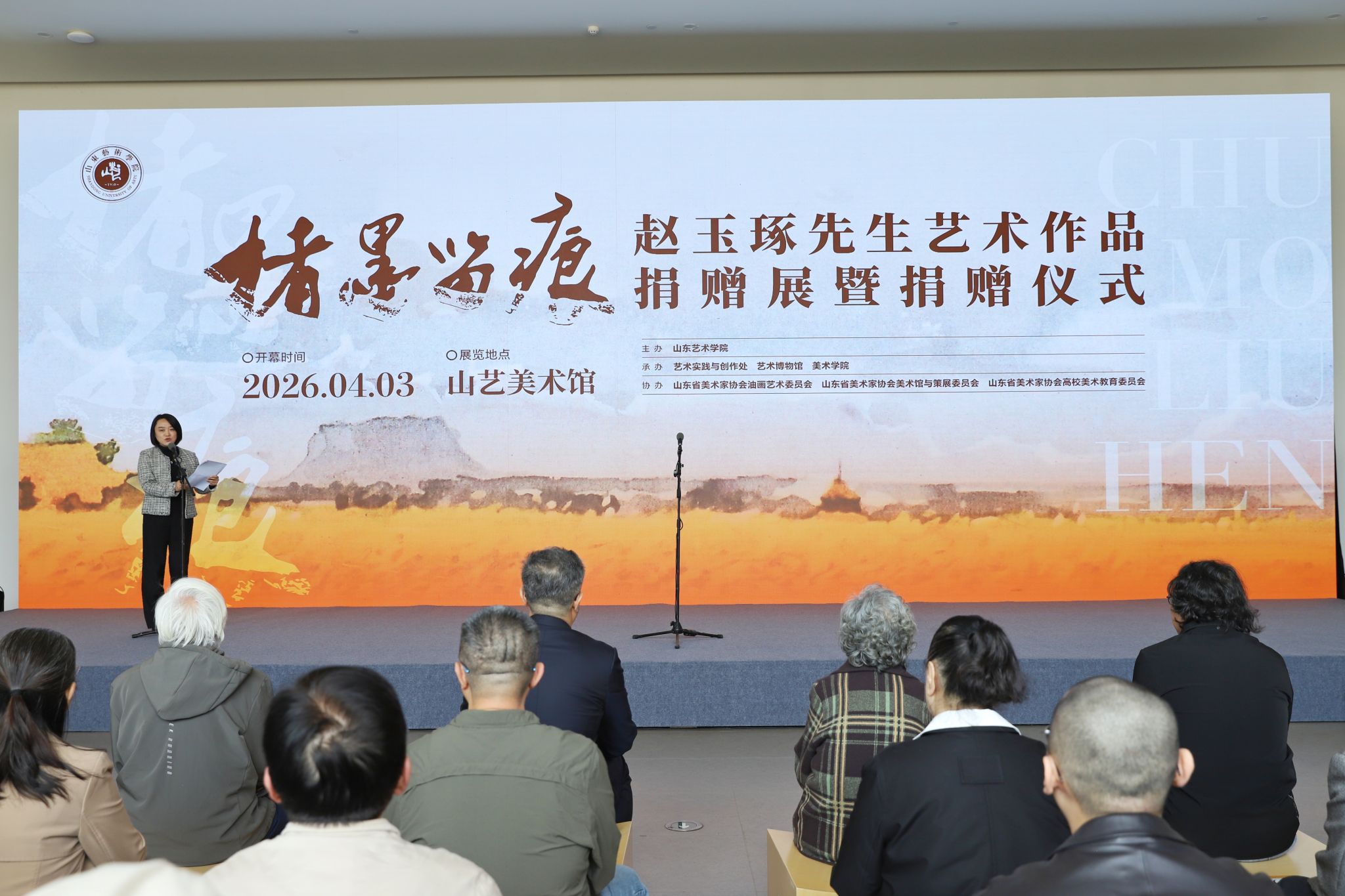 4月3日上午,楮墨留痕——赵玉琢先生艺术作品捐赠展暨捐赠仪式在山东艺术学院美术馆举行。院长徐青峰,原院长王力克,赵玉琢先生夫人赵振华,学校老教授李百钧、山东大学艺术学院副院长姚榕华等先后致辞。学校党委副书记苏茂兴,党委委员、副院长韩文涛,党委委员、纪委书记、省监委驻学校监察专员周立志,原副院长刘大力,老教授代表李振才等、赵玉琢先生家属代表、亲朋挚友代表,驻济高校与美术馆单位代表,我校退休教师、在职教师及美术学院师生代表参加仪式。仪式由副院长彭丽主持。