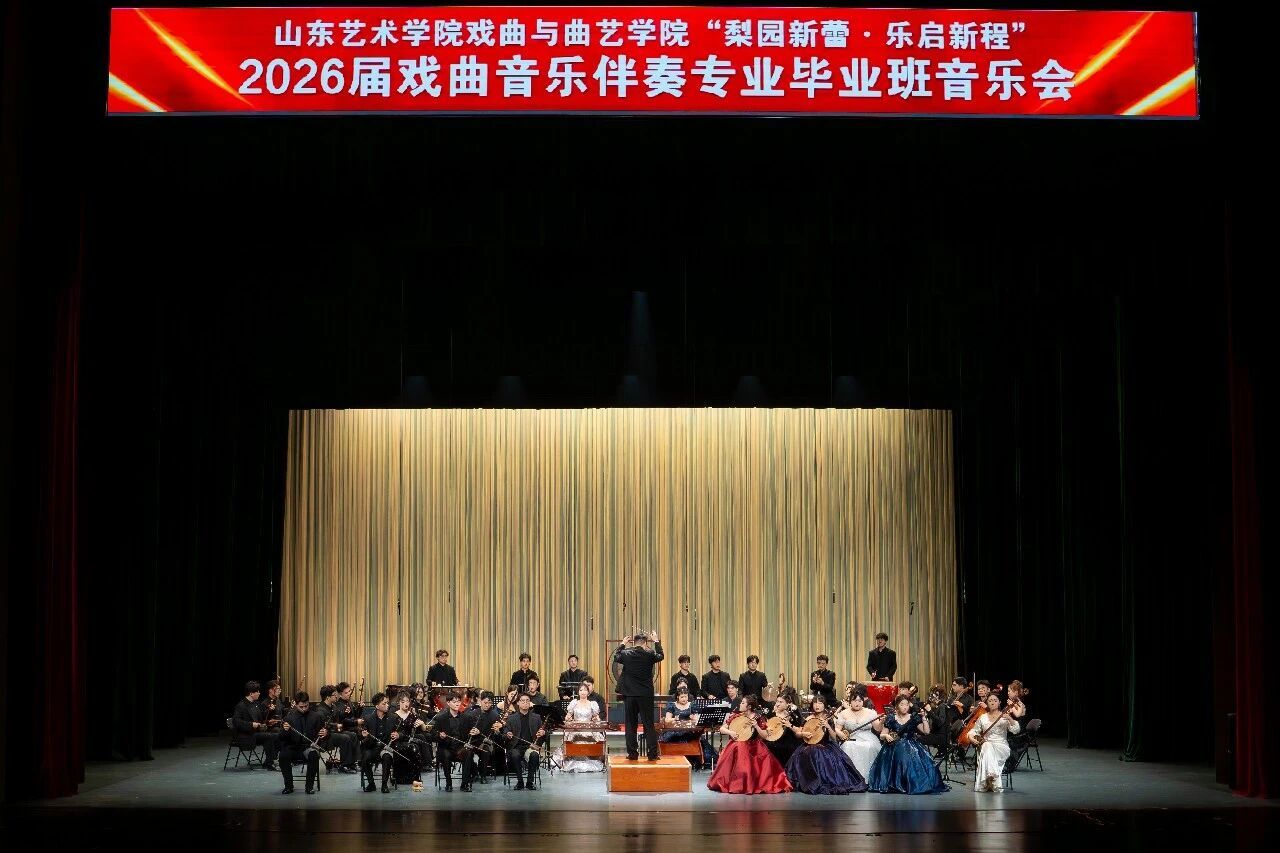 晚上,“梨园新蕾 乐启新程”戏曲音乐伴奏毕业班音乐会在欢快的开场曲《迎春》中拉开帷幕。吕剧《姊妹易嫁》板式严谨、丝弦悠扬,《李二嫂改嫁》器乐细腻、质朴深沉,尽显山东地方戏曲音乐魅力。合奏《皮影》、扬琴二重奏《Dancing Leaves-天秤座》灵动清新,大提琴重奏《Libertango》热情奔放,二胡齐奏《战马奔腾》气势磅礴;《晴雯曲》婉约凄美,《梅花新调》清雅悠扬,月琴与乐队《渔歌》旋律舒展,勾勒出浓郁的诗情画意。京剧《锁麟囊》伴奏婉转典雅,《沙家浜》配乐激昂嘹亮,尽显国粹底蕴。演出最后,经典《夜深沉》压轴奏响,鼓乐铿锵、京胡悠扬,充分展现毕业生扎实的专业素养。