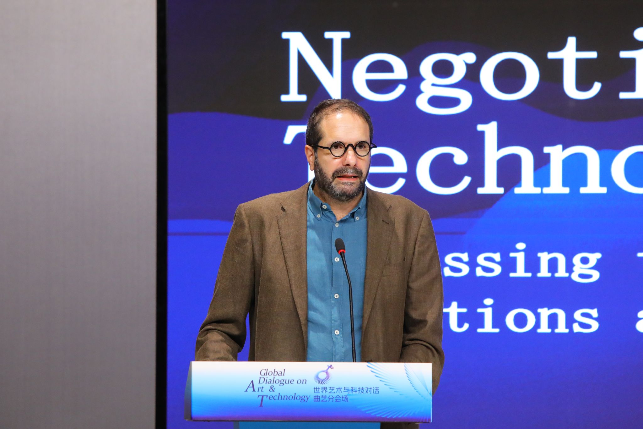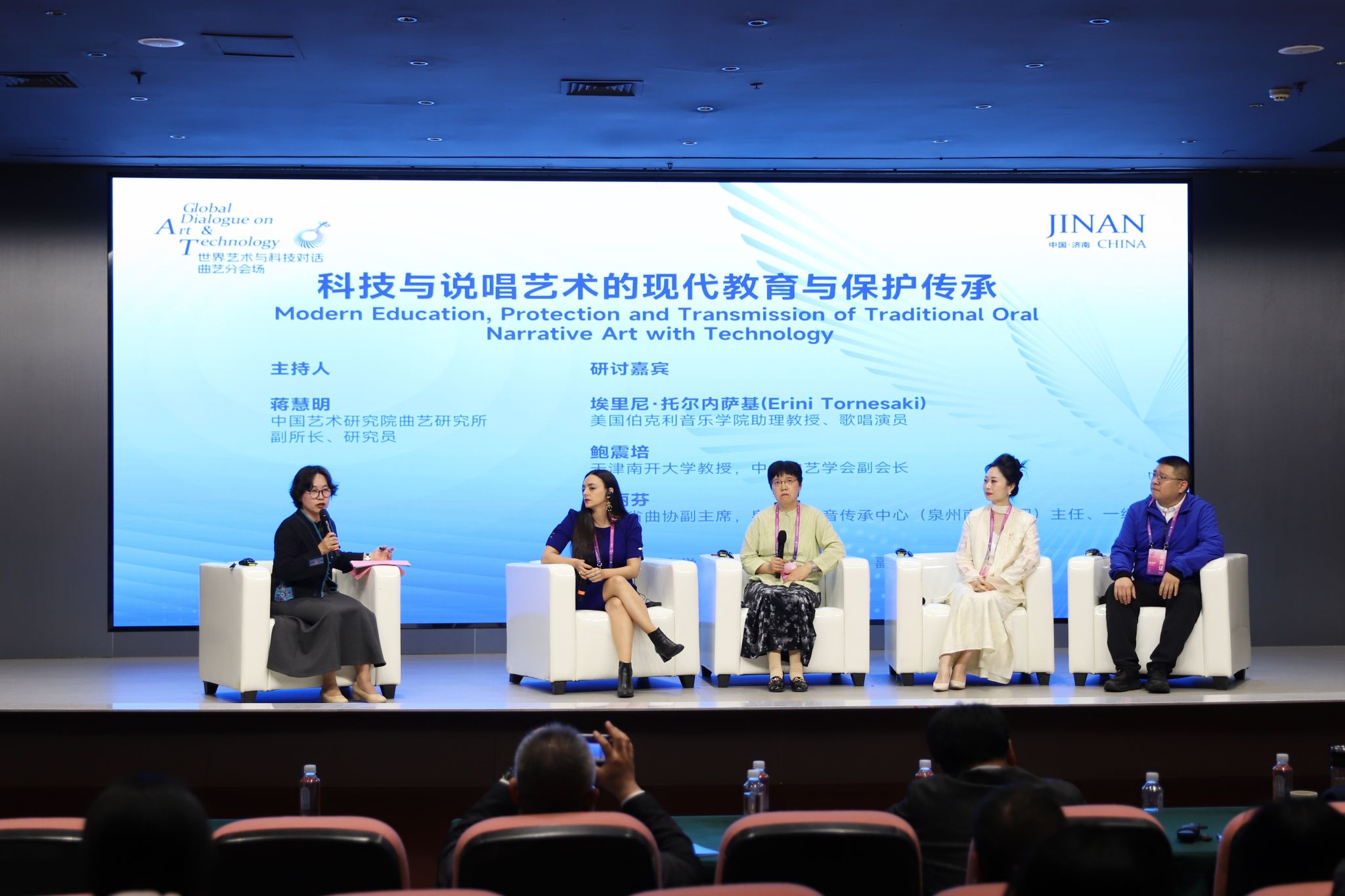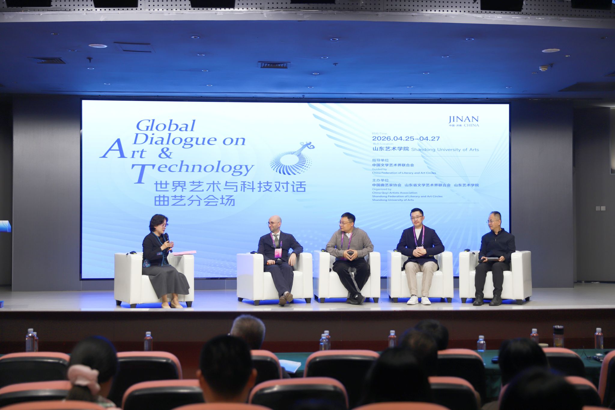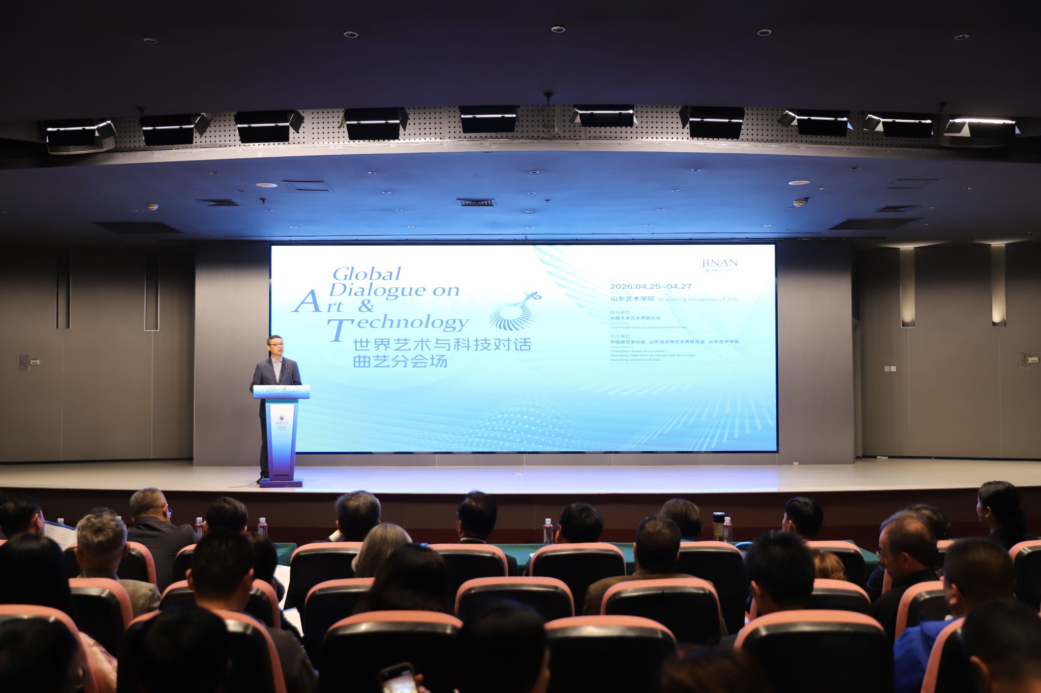 4月26日,世界艺术与科技对话曲艺分会场交流活动在山东艺术学院隆重举办。应中国曲艺家协会和山东艺术学院邀请,来自美国、葡萄牙、意大利、斯洛文尼亚等国家的专家学者以及部分地方曲协、高校曲艺专业和曲艺院团的中外嘉宾共聚一堂,围绕“融合共生——传统说唱艺术与现代科技的协同演化”主题展开深入研讨。中国曲协分党组书记、驻会副主席杨发航,中国曲协副主席张旭东,山东省文联党组书记、副主席何思清,山东省委外事办公室副主任杨怀广,省文联党组成员、副主席于惠东,山东省教育厅体卫艺处处长王桂龙,山东省艺术研究院院长林凡军,山东省曲协主席慈建国,山东省文联办公室主任马宗前,南京艺术学院党委常委、副校长张捷,广西艺术学院党委常委、副校长谢斌,山东艺术学院党委书记徐梅,院长徐青峰,党委委员、副院长韩文涛,党委委员、纪委书记、省监委驻学校监察专员周立志,副院长彭丽,党委委员、宣传部部长孔宪坤等出席相关活动。