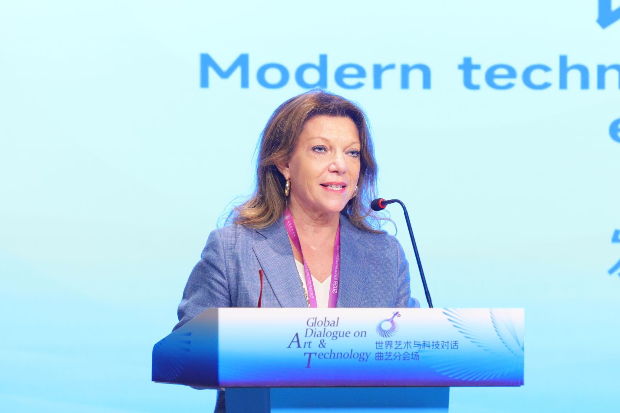 徐梅代表学校向远道而来的海内外领导、嘉宾、专家学者致以热烈的欢迎和衷心的感谢。她指出,曲艺作为中华优秀传统文化的璀璨瑰宝,植根民间、融汇风情,是承载民族记忆、传递人文情怀、联通世界文明的重要载体。山东艺术学院植根齐鲁大地,作为山东省人民政府与文化和旅游部共建高校,始终坚守立德树人根本任务,自觉担当文化传承创新使命。期待以本次对话为契机,推动曲艺艺术与数字技术、新媒体传播、国际文化交流深度融合,让中华曲艺跨越山海、联通世界,成为世界读懂中国、文明交流互鉴的生动纽带,共同书写全球艺术与科技协同发展、文明共生共荣的崭新篇章。
