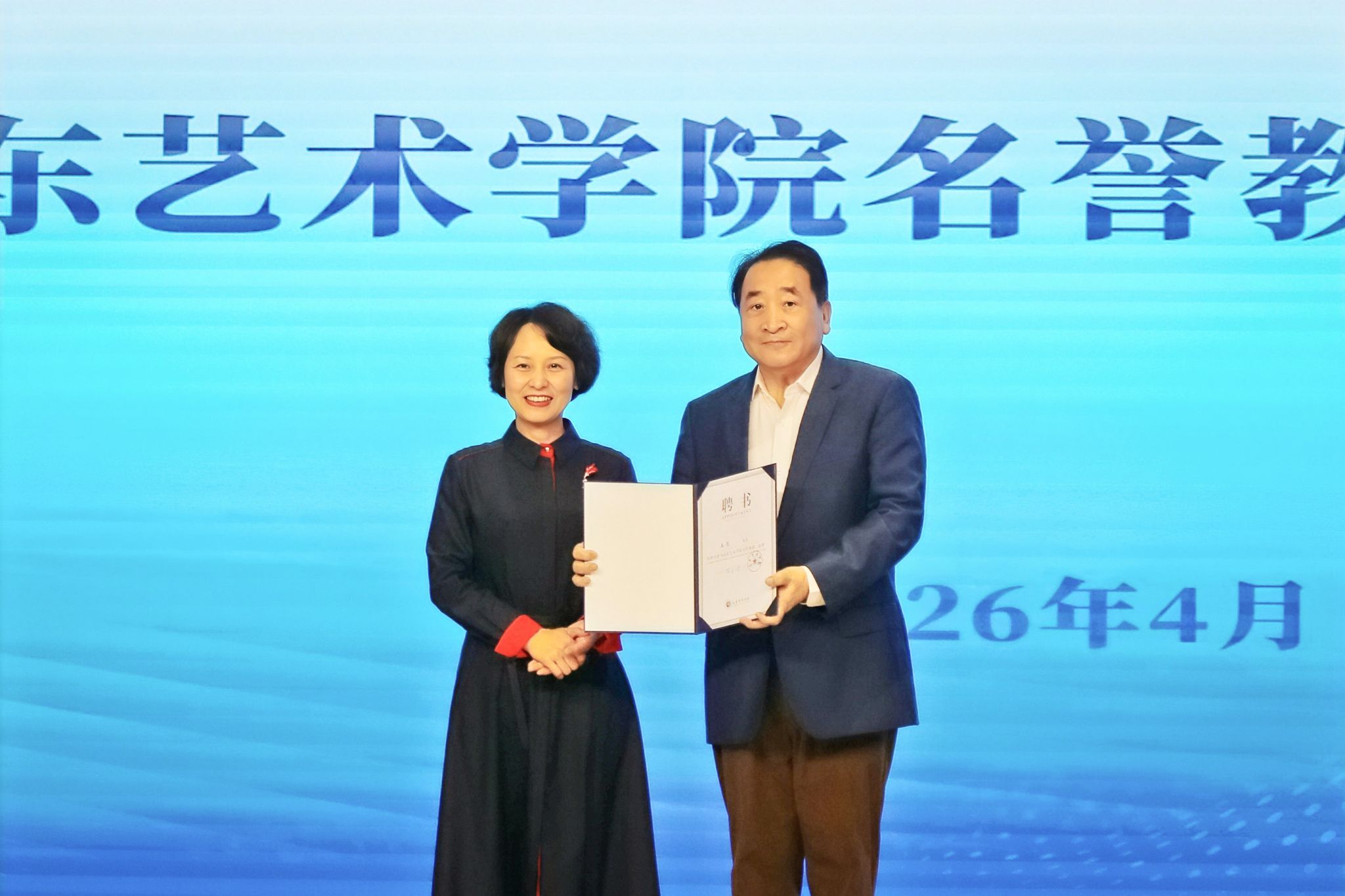 4月27日上午,国际说唱艺术联盟主席、著名相声表演艺术家姜昆受聘为我校名誉教授,以《你离人民有多近,人民跟你有多亲》为题讲授第一课。党委书记徐梅,党委副书记苏茂兴,党委委员、副院长韩文涛,党委委员、纪委书记、省监委驻学校监察专员周立志,副院长彭丽,党委委员、宣传部部长孔宪坤出席活动。艺术实践与创作处、科研处、戏曲与曲艺学院负责同志及师生代表参加活动。活动由韩文涛主持。聘任仪式上,徐梅为姜昆颁发山东艺术学院名誉教授聘书并合影留念。...